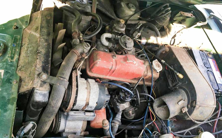 The seller is very short on description, so I assume they figure the pictures will do the talking. This particular example is a rubber bumper model, that while not as aesthetically pleasing as the steel bumper cars certainly the Midgets fared better than their MGB brothers. Speaking of bumpers, this one shows the usual greying dullness and sagging rubber that afflicts so many of these small sports cars. Replacements can be found, or steel bumper kits can be bought, however, they are quite expensive and body modifications need to be made in order to fit them. The paint on this Midget is worn and surface rust is showing through all over the body. Normal dents and dings are noticeable and the rear wheel arches look as though rust is setting in along the lower portions.