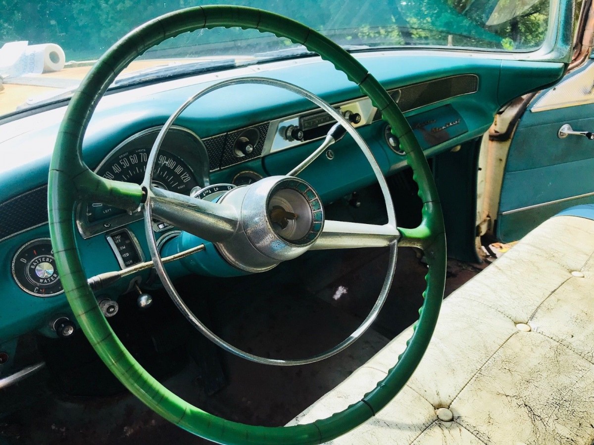 In 1975 I was looking for a Nomad, preferably a 1955. I got a line on a 57 in a used car lot in Watertown South Dakota, red and white outside, red,black and silver inside. The owner of the lot had decided to take the Nomad home to be a father son project-I couldn’t talk him out of it. I drove around town and found a 55 Safari behind a gas station, green and cream like this one( colors reversed) in nice condition in and out except for a minor dent in the left quarter panel. Nice set of Cragar S/S wheels. $500 – but I didn’t want a Safari! I wanted a Nomad! Ended up finding my 55 Nomad a couple of months later. Had to pay $800 for it. Oh well, guess I’ll just have to chalk up not buying the Safari to experience.