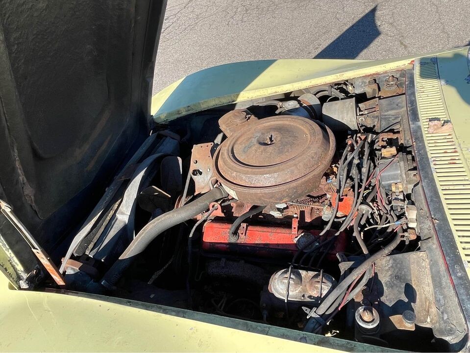 The 427 has been replaced by a small block, which might be a 350, a standard Corvette engine. It’s paired with a 4-speed manual transmission, but we don’t know if that’s been swapped, too. Whatever the case, the car looks to have been dormant for a while and doesn’t run. And the seller doesn’t speculate what it will take to get it going again. We’re told this is a “barn find” though we don’t know if it actually came out of a barn.