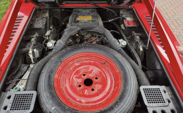 4spdbernie is right – this car was recently sold for $40,500. Some comments, though: the spare is correct- Maseratis of this era used a 4×130 bolt circle. The Merak did outsell the Bora and cost was undoubtedly a big reason, but the fact that then-owner Detomaso shut down the Bora after ’77, but continued the Merak through ’83 made a difference, too. All Meraks used three carbs; 42DCNFs on the standard engine, 44s on the SS. The SS also has different heads with larger valves. The story about the prototype engine being derived from a cut down type 107 V8 is apparently true, but it was done only to impress Citroen management with Maserati’s ability to move quickly. The C114 production engine was an entirely different design and, contrary to some other accounts, not at all related to the Biturbo V6 which followed. We had a red Merak with a swapped SS engine for about 6 months, sort of “on approval”, but we passed. I’ve since regretted that, but I had, and stil have, a red Bora and the Merak seemed superfluous. I’ve since read that although they look the same, they drive differently. Oh, well – we had to trim the herd when we sold our building, so it probably would have gone away anyway.