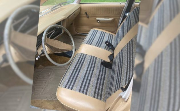 The interior looks almost like new, other than a dirty steering wheel. The seats are fantastic in this cloth and vinyl fabric mix, which I believe would have been the standard-issue seat fabric on the Aspen coupes and sedans. Here’s a 1980 Dodge Aspen brochure to see if you can decipher whether these are original or not. In any case, they look like new both front and back, and that’s all that matters.