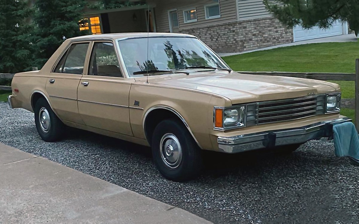 A Natural Suede Tan sedan with a tin tip and black wall tires automatically looks like a law enforcement vehicle to me. The full wheel covers are a bit fancy for that, though, and this 1980 Dodge Aspen, as far as we know, was just a normal car for normal people. The seller has it posted here on craigslist in Chisago City, Minnesota, and they’re asking $3,500. Here is the original listing, and thanks to Tony P. for the tip!