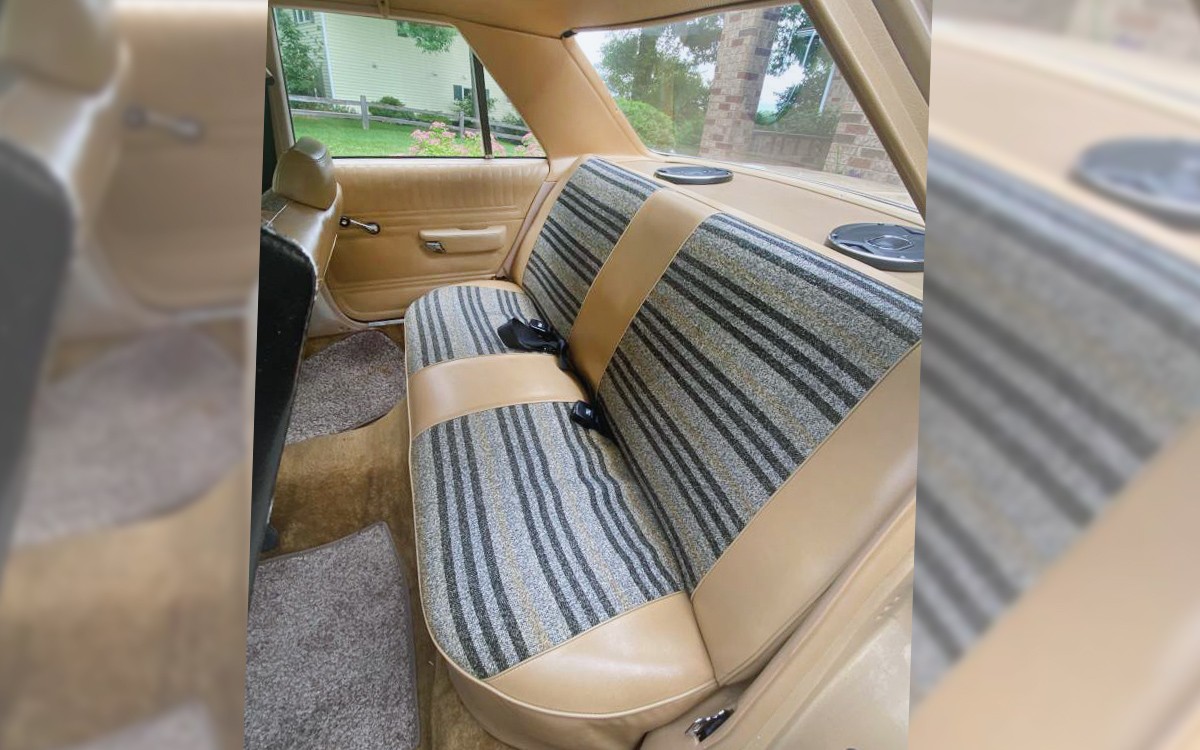 The interior looks almost like new, other than a dirty steering wheel. The seats are fantastic in this cloth and vinyl fabric mix, which I believe would have been the standard-issue seat fabric on the Aspen coupes and sedans. Here’s a 1980 Dodge Aspen brochure to see if you can decipher whether these are original or not. In any case, they look like new both front and back, and that’s all that matters.
