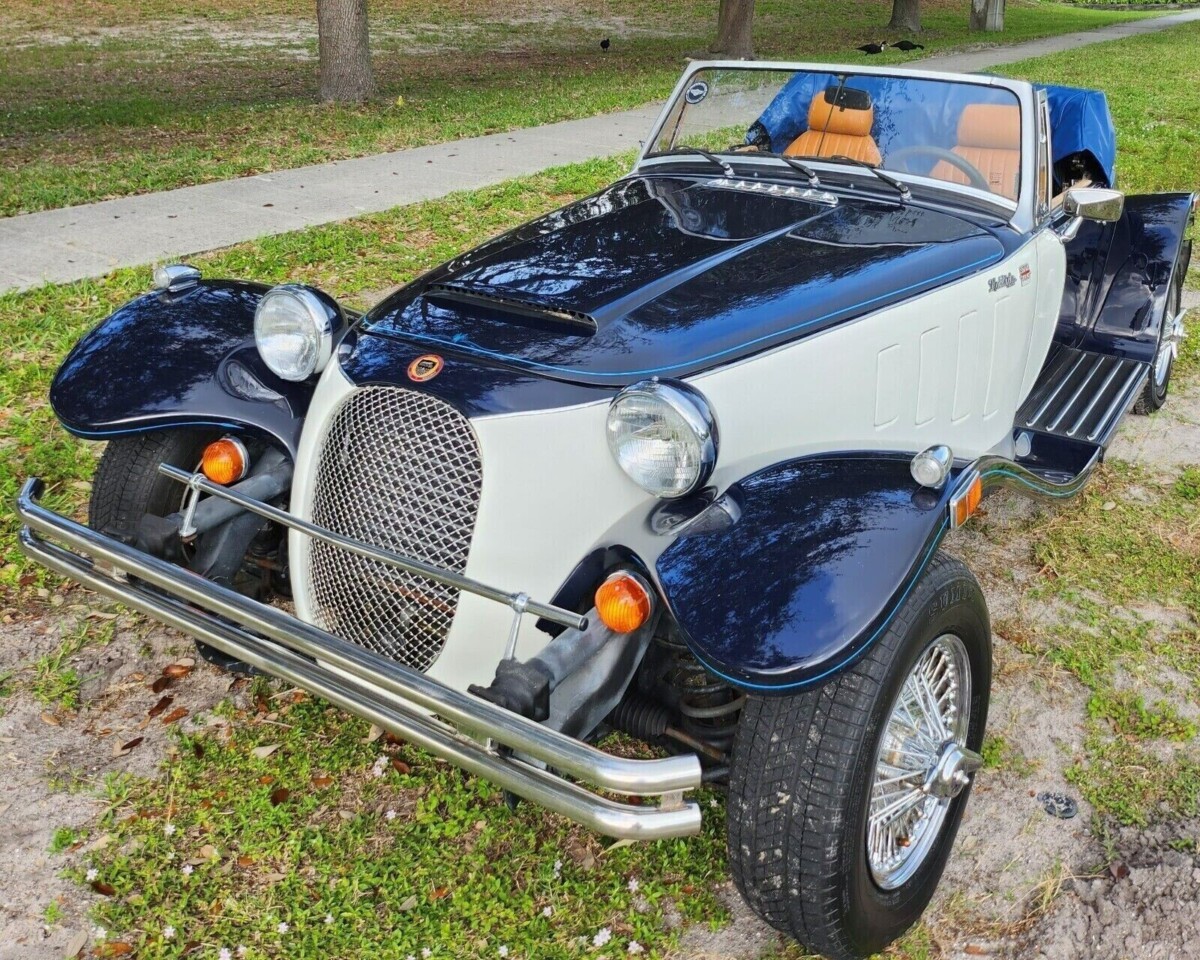 This machine looks to have been babied and has only averaged 500 miles a year since its build date. An Experian AutoCheck Vehicle History Report supplied by the seller gives the car an above-average score. The blue and white paint looks quite good with no flaws to be seen. From the rear and with the top up, the Kallista looks a bit like the Plymouth Prowler (to me). The saddle interior (leather?) looks as though it’s been hardly used.