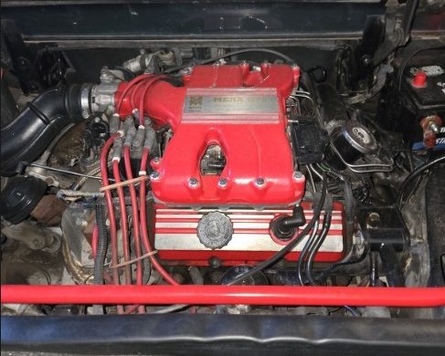 Though the exterior is a decent imitation of the 308, the interior wasn’t renovated to match, though buyers could check a box and for $700, the seats were skinned in leather upholstery similar to that of the prancing horse. But the square vent housings and the awkwardly appended instrument cluster are straight out of the econo-box ’80s. This car’s driver’s seat probably needs rebuilding, with collapsed foam and torn upholstery. On the positive side of the ledger, the dash is clean, the carpets look good, and at least what we can see of the door seal is fine. In 1988, CCL introduced Cromodora replica wheels, aligning the car’s appearance ever more closely with the 308.