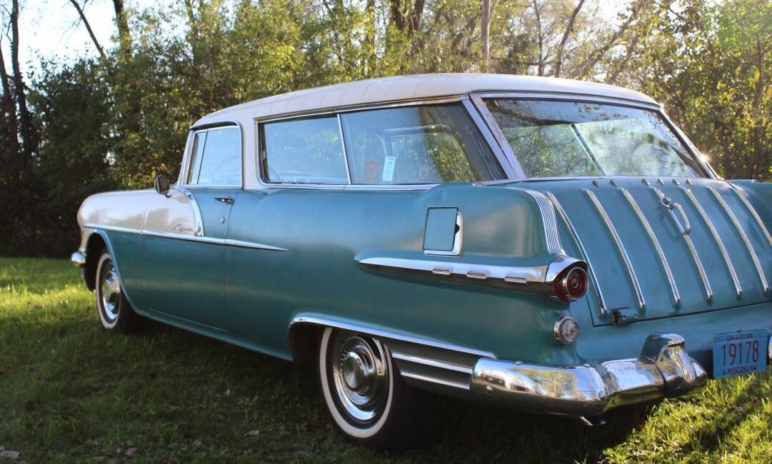 As a life long wagon nut, I really appreciate seeing this. Although I cringe every time I see a 55-57 Chevy (I never liked them, even growing up in the sixties I thought they were ugly, but to each his own), it’s nice to see a horse of a different color from that era. The last new car my grandfather bought was a 1957 Pontiac, I think it was a Star Chief, or something like that. Gorgeous car, and I found out it was still around about 15 years ago (he died on Christmas Eve in 1965, grandma never drove, so she sold it). It was white over red with that beautiful body side chrome… Always liked the extra bright work on the Pontiacs back then. Cars had character and weren’t made with a cookie cutter. Thanks for sharing this long roof beauty!
