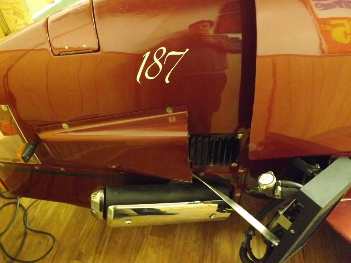 The motor in this one is a fuel-injected, water-cooled Honda Silver Wing. The fuel-injected version of this motor is probably from the scooter made starting in 2002; if we’re right, it’s a 582 cc twin-cylinder motor with about 50 hp. (No photos of the engine are supplied.) The seller indicates that the cooling system has been newly updated and the exhaust is new. The transmission is an automatic. The seller notes that its reverse motor doesn’t always work. A big selling point for this invention was its excellent gas mileage, and while the marketing claim of 100 mpg was aspirational, owners did manage at least 50 mpg. The vehicle weighed about 1000 lbs, so it wasn’t necessarily logical to claim that making a heavier motorcycle would result in higher mileage than the motorcycle itself. A Yamaha 400 cc bike gets about 60 mpg.