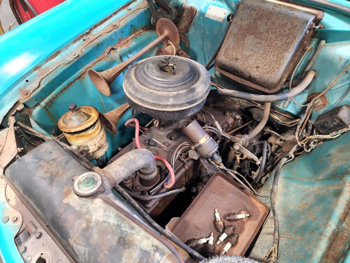 Speaking of the engine, in 1954 Nash installed a 90 bhp 196 cu. in. in-line six-cylinder paired with a Hydra-Matic transmission from General Motors (if you opted for the manual transmission, you got a 184 cu. in. six-cylinder with 85 bhp). Despite the frozen motor, this car has apparently only accumulated 45,000 miles from new. With fuel economy as its foundation, the Rambler Cross Country wagon was a leisurely performer, taking about 19 seconds to get to sixty mph from zero. Curiously, though the eBay listing shows the engine in place, the seller says it has been removed. The car does roll and steer but the brakes do not work.