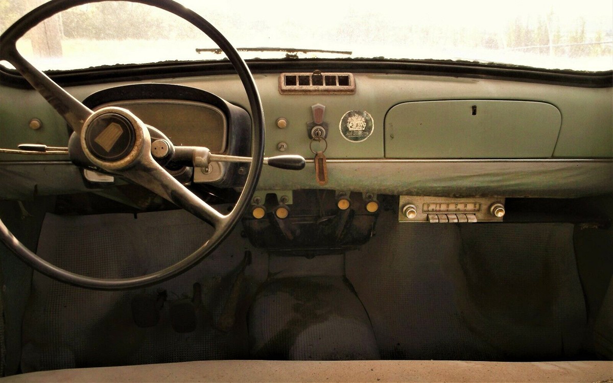The interior is as simple as can be and the knobs and small details on the dash are fun. The seller says that this is from their father’s estate and it’ll definitely need to be gone through completely. When they pulled it up onto the trailer one of the front wheels was stuck, a fairly common problem that shouldn’t be difficult to fix. The floors are soft and they suspect rust, that may be a little more difficult to repair.