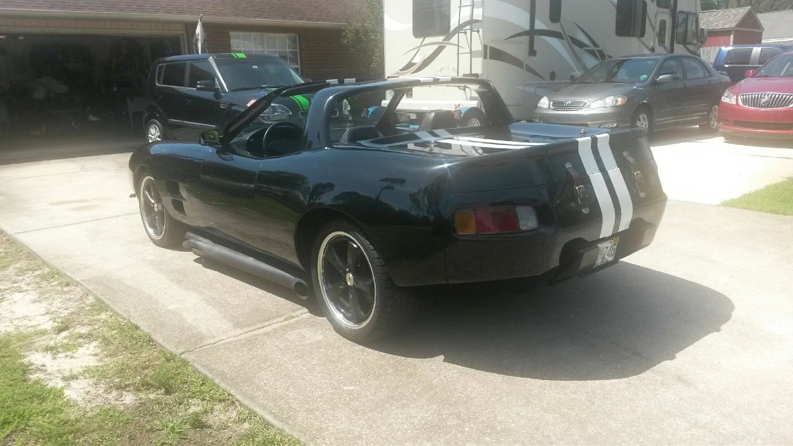 I searched quite a bit to try to find out more about this car, whom some compare to a Viper, others to an overgrown Miata and some to an E-Type Jaguar (those are E-Type bumpers, aren’t they?) but I was unsuccessful. This posting and follow up on a Porsche 928 message board seem to have the most information (also note that the car was priced at $22,000 at that point) and call some of the 928 information into question. I’ll tell you this, with only three supposedly produced, you won’t run into yourself very often in your travels!