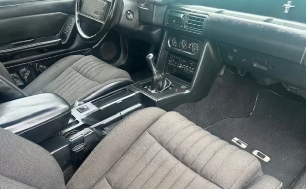 The interior is a bit rough in places, with the plastic trim seemingly suffering from some signs of use. The map pockets on the doors are, as usual, sagging, but I’m sure a Fox body enthusiast has found a replacement source for these common wear items. The best feature of this interior is the manual gearbox which is by no means a guarantee when you begin shopping for a Fox body, as plenty of them were ordered with the optional automatic gearbox. The seller notes he’s swapped the rear end in his car for a 4.10 positraction unit, which should wake things up nicely while providing some added stability in fast corners.