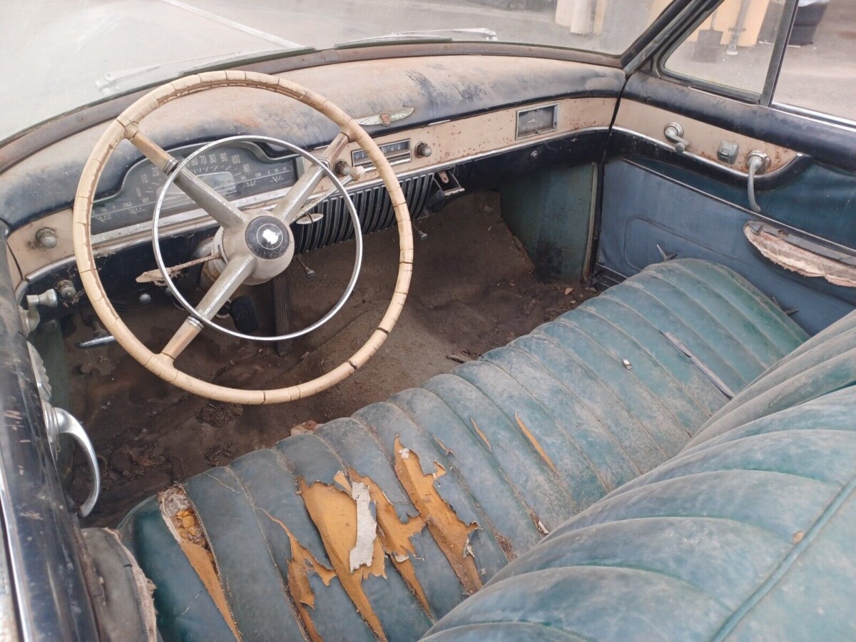 While not a runner, the seller tells us that the 160-gross HP, 331 CI V8 engine turns freely and did run seven years ago – OK, good to know. GM’s famed Hydramatic automatic transmission handles gear changes but a manual three-speed gearbox was still standard equipment in 1950.