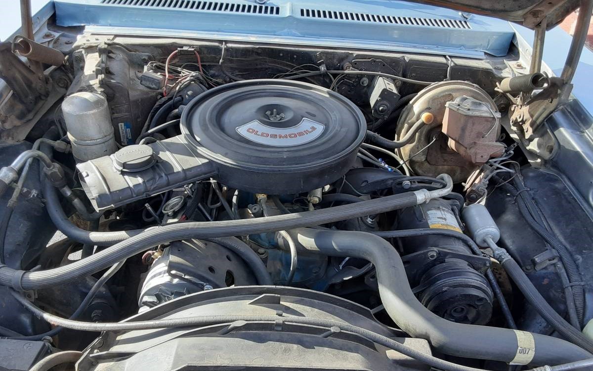 You’re right, this isn’t a Buick 350 in this car! It looks more like a 260 Olds motor which shared the block with the 350 Olds. This guy was probably told it was a 350 when he got it since they look the same as a 260. Well now he knows why it’s such a Dog, and probably the reason he’s selling it!