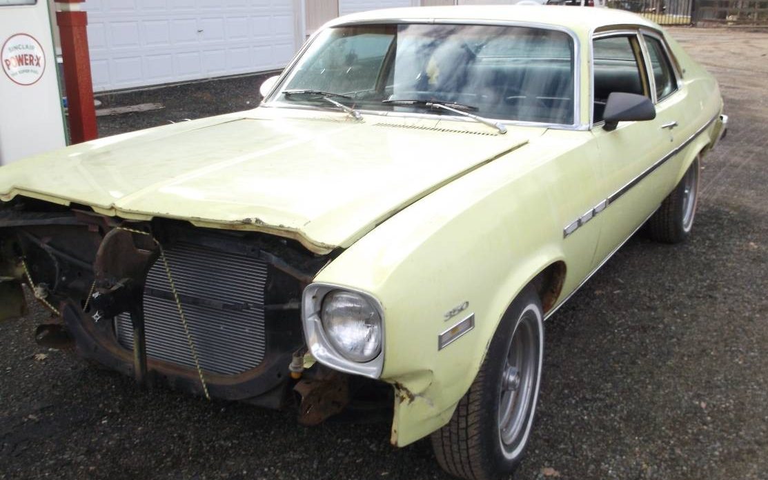 I’m wondering if an entire Nova front clip would work. The hood needs to go and the fenders are damaged as well. Replacing the clip would be the way to go. Fix the front, clean up the interior and you have a nice 70’s driver!