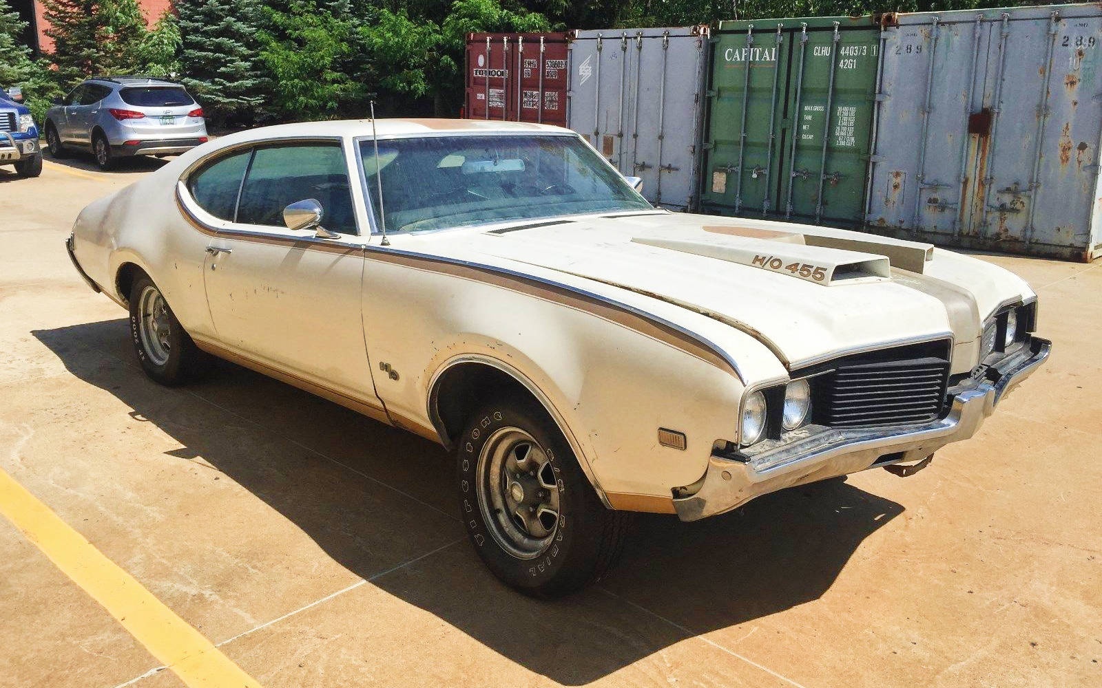 I see so much wrong with this 442 , its clearly not all original as a H/O , mirrors incorrect , side stripe incorrect , hood stripe incorrect color ,H/O fender badges placement is incorrect , I am pretty sure its a clone
