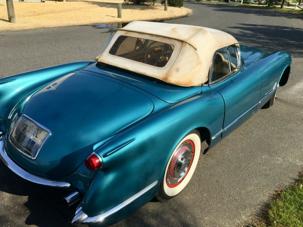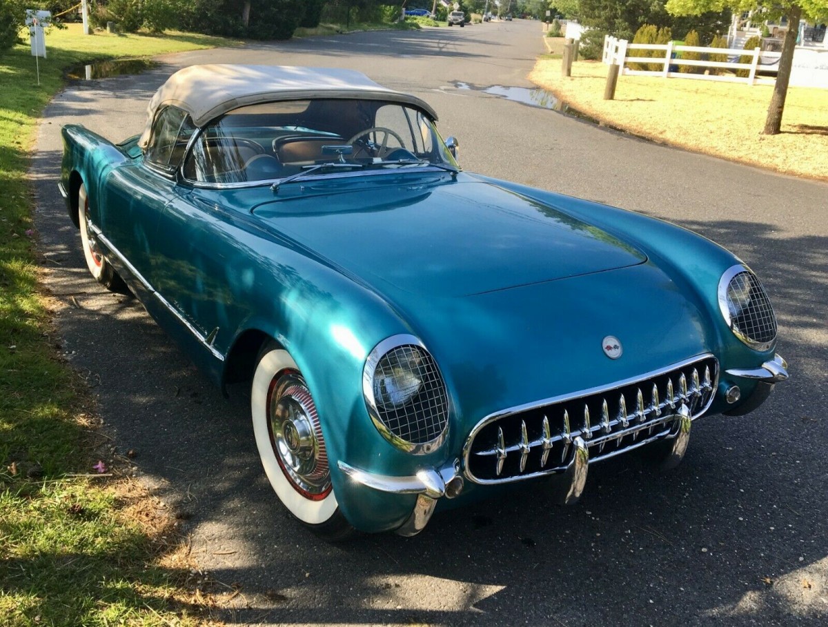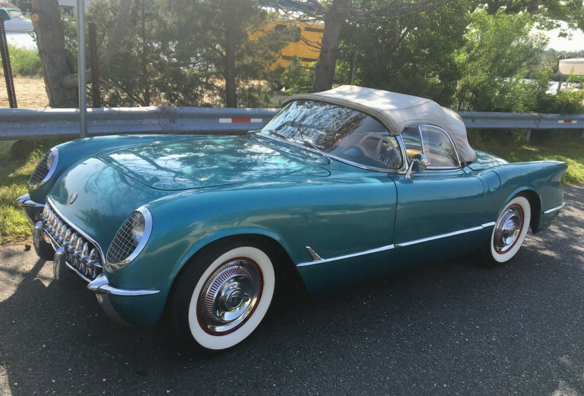 The 1953 Corvette was very much a “lucky dip” when it came to build quality, as the car was such a radical departure from previous cars. That year represented a fairly steep learning curve, and the result was a car in 1954 that was built to a far higher standard. After finding themselves limited to a single color in 1953, the 1954 model provided a choice of four different colors. Interestingly, for all of this new-found diversity, the majority of ’54 models rolled off the line finished in Polo White. The second most popular choice, with 300 cars built, was Pennant Blue. This is one of those cars, and the color does suit the car quite nicely. The Corvette has undergone a repaint during the 1970s, and there are some problems with that which are beginning to rear their ugly head. There are bubbles in the paint in a number of spots, and it really looks like the best option will be to strip the car to fix this. The soft-top is also looking quite discolored, and I don’t believe that this will respond to cleaning. The owner does supply a number of photos of the underside of the car, and it looks to be rock solid, which is good news.