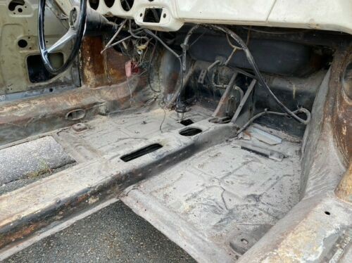 And while the floor work remains to be done, it also appears that a previous owner has already begun cutting out the bad metal to ready it for replacement pans. The interior is effectively gutted, and the listing photos do show what looks to be most of the materials safely stored for future re-install; however, the seller does specify in the listing that the front seat cores are missing. Other items, like the steering wheel and radio, are not pictured, while the rubber floor mats, door panels, and shifter assembly all are. It would be good detective work to get a full accounting of all that’s included.