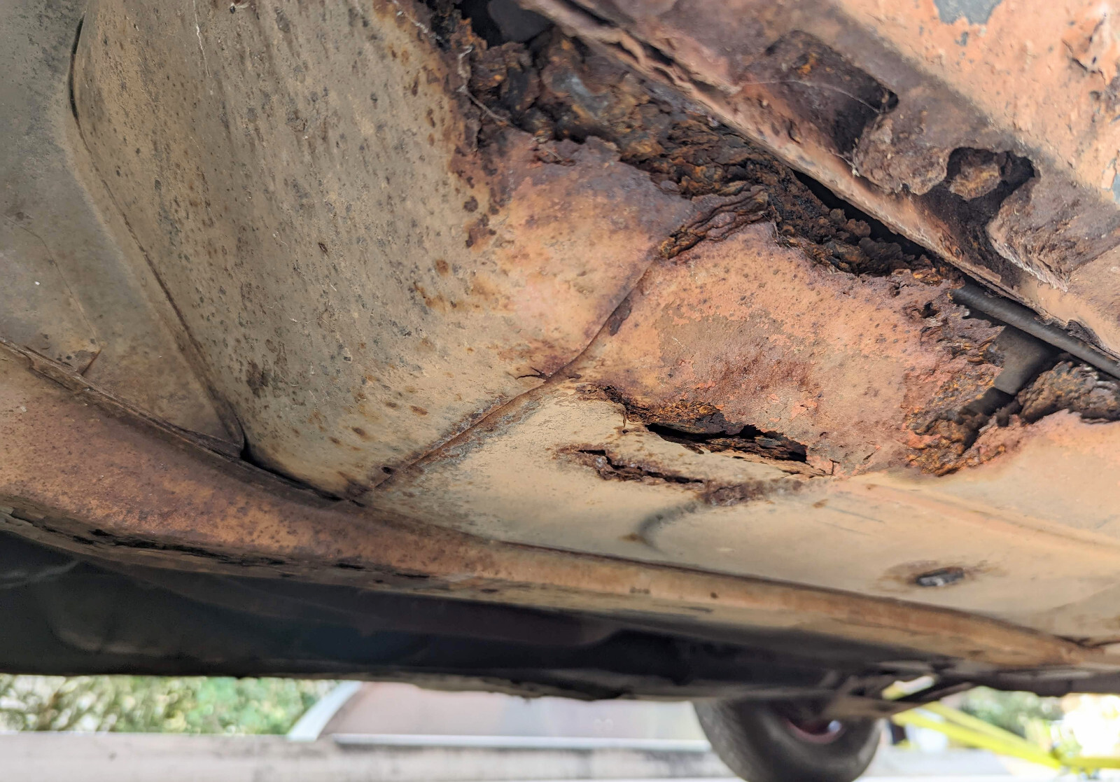There’s plenty of work to be done here, but the car is said to be an unmolested, all-numbers-matching original example, and the seller thinks it would be a great candidate for restoration. He says it’s been painted different colors throughout the years, but most recently was returned to its original orange, and while there is no body filler present you will find the typical rust issues most of these cars have. There’s also quite a bit of corrosion down under. The owner doesn’t think the car has ever been in a major accident, but looking at it from behind there is evidence it’s had a light tap on the bumper.