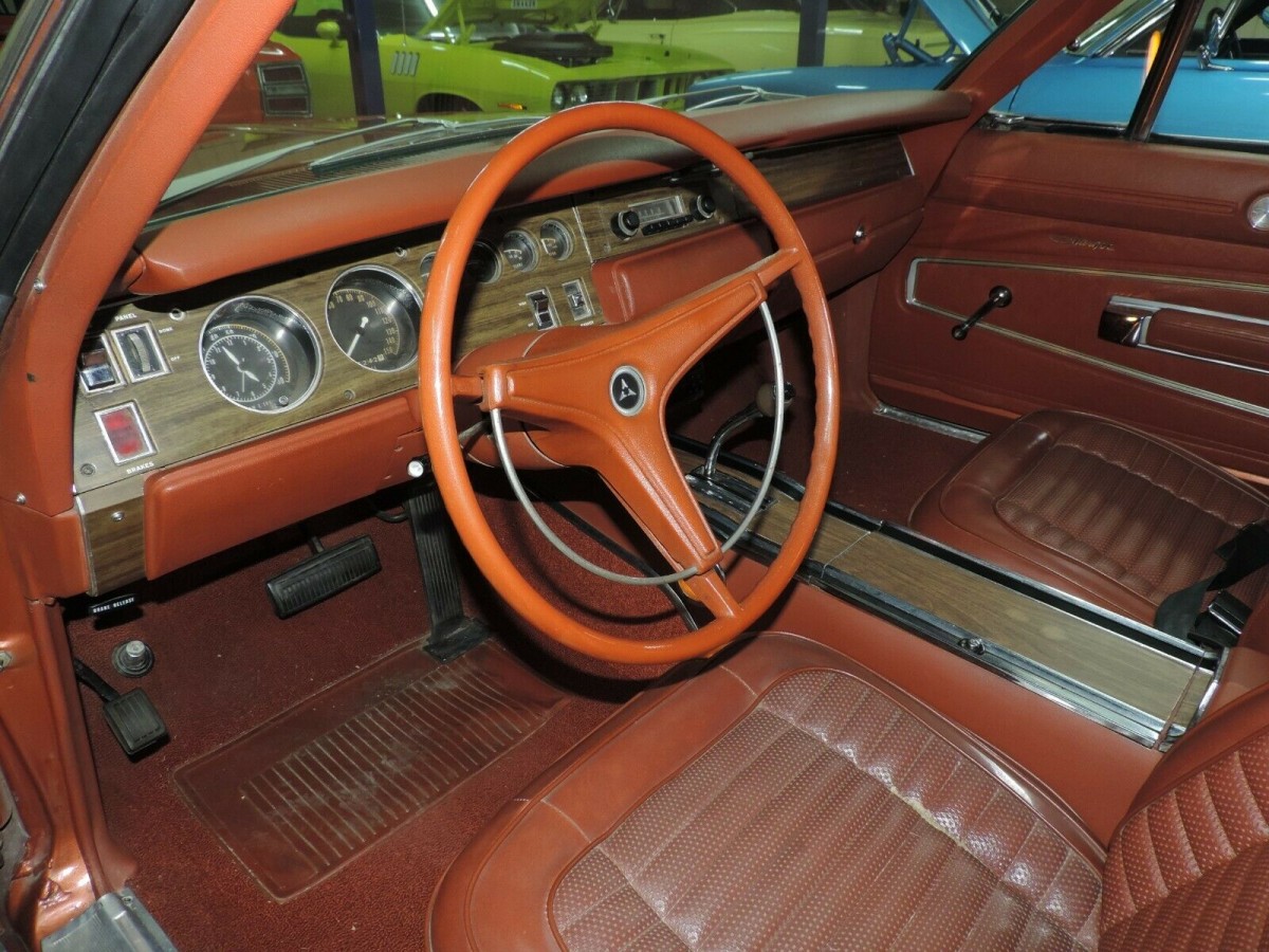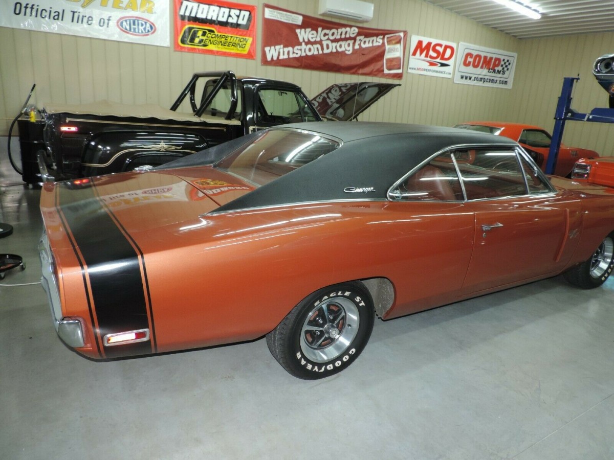 This Charger seems to have a lot of points in its favor. It has received a repaint in its original Dark Burnt Orange, and when combined with the Black stripes and Black vinyl top, it gives the car a tough but classy appearance. That paint holds a beautiful gloss, and there are no signs of any significant flaws in either the panels or paint. The owner says that most of the steel in this classic is original and that the only rust repair that has been performed is the professional replacement of the trunk pan. The rest of the R/T remains rust-free and remarkably well preserved. The Charger features the distinctive grille with the concealed headlights, and the covers for these work perfectly. The trim and chrome are immaculate, while the same is true of the glass.