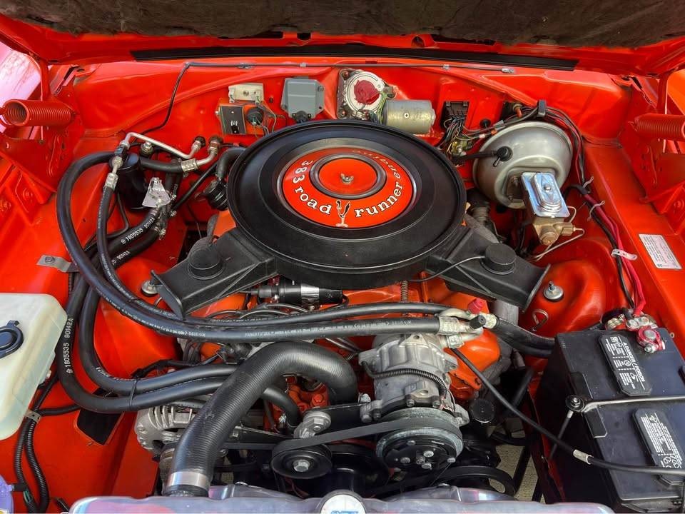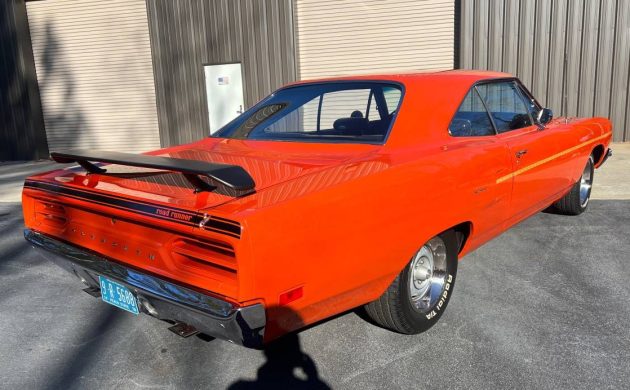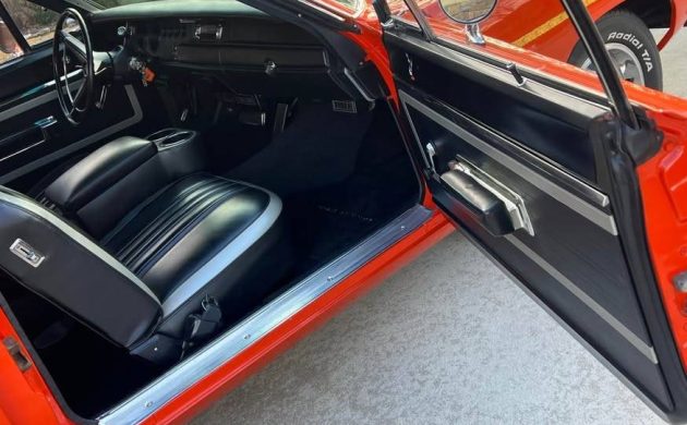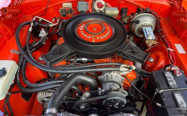 Mr. Clark, let me correct an error that I’ve seen made several times in the description of Road Runners with this interior that have appeared here on Barn Finds. That’s not a black vinyl interior with white accents. Take a close look at the picture with the passenger side door open and you’ll see that the accents on the seats and the door cards aren’t white, but silver. It often does appear white in photos, but this one shows the true silver color better than most if you look closely,