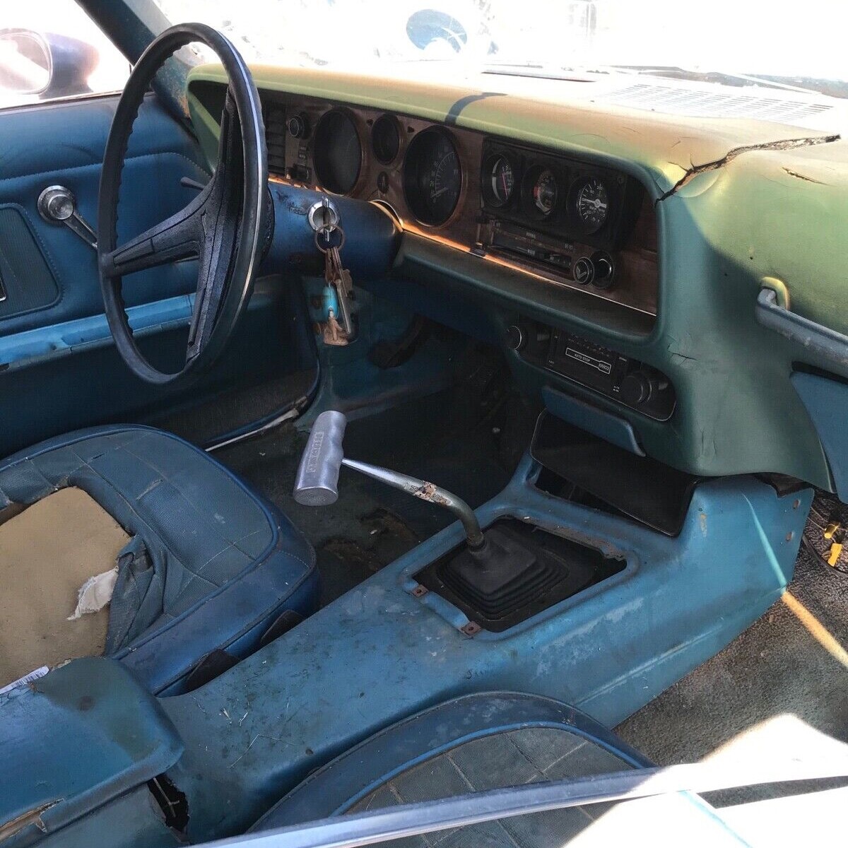 The car sits in a lot with at least one other Firebird of the same vintage. The body will need substantial work, including at least new rear quarter panels, tail and trunk pans, and the outer wheel-well housings. We’re told the floors and frame rails are good. The different colored front clip suggests that repair work has already been done and primer applied. The interior is pretty worn out, so the seats will need to be redone and the dash pad replaced, among other things. This looks like an ambitious project but could be worthwhile as only one out of seven Firebirds built in 1970 were a Formula 400.