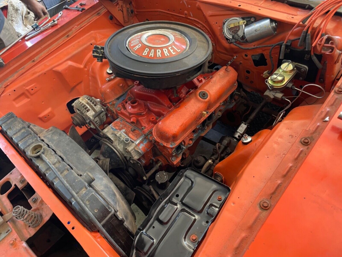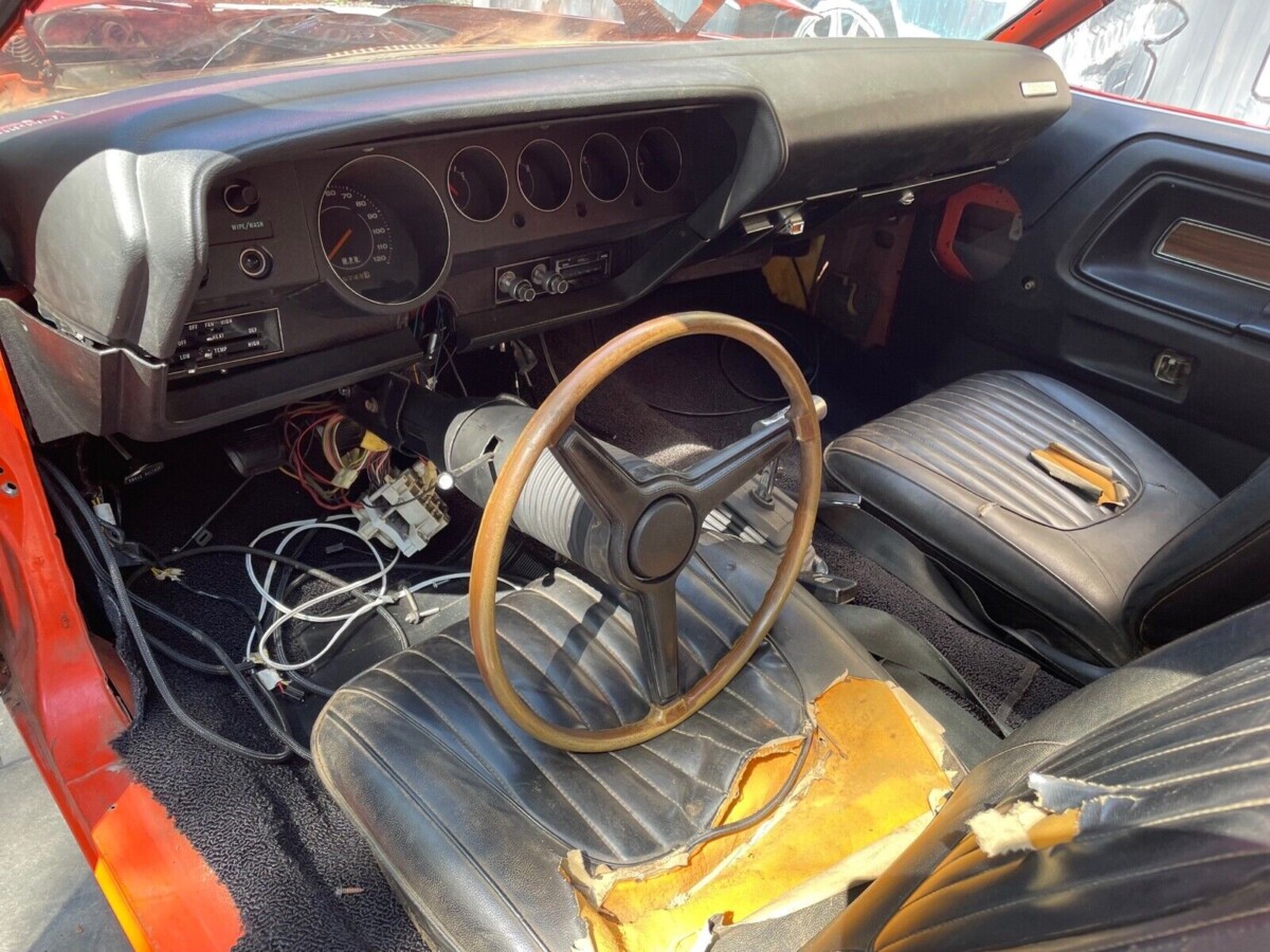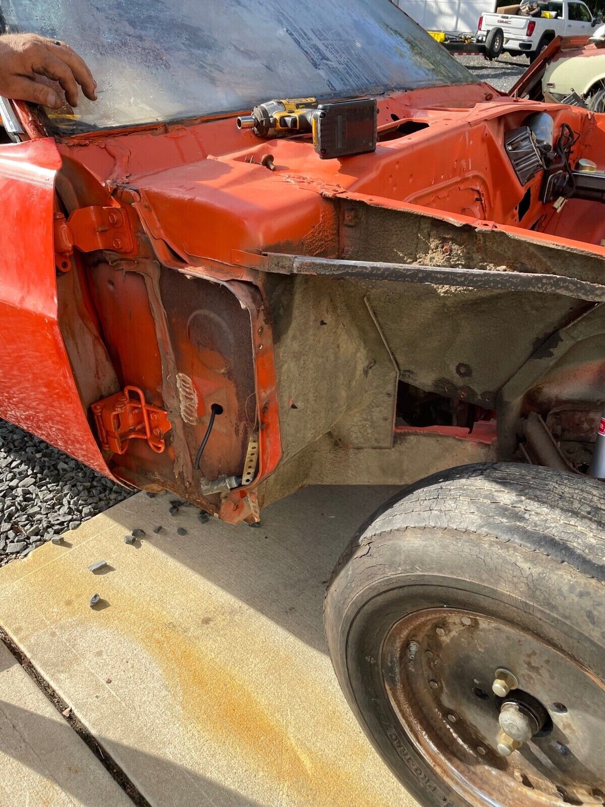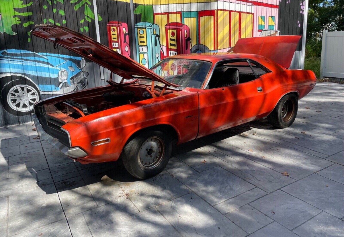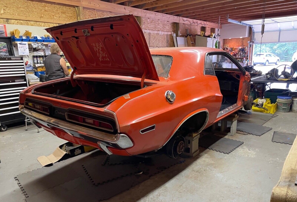 We’re told the bones on this Challenger are mostly good, though some of the sheet metal has been removed and only partly refastened. The paint is EV2 Hemi Orange which we assume is the applied factory color. A photo of the cowl tag would have been helpful as the seller says he/she has it along with the VIN plate, door tag, build sheet, and title (they’re all said to jive). The principal rust seems to be focused on the hood.