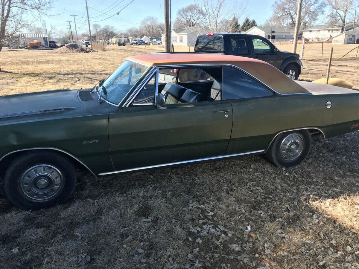 Don, I have 69′ swinger 340 (4- speed) and it is red and should be, but I believe the automatics could or were blue. If this car is an original 340, the car has been parted of 340 items, such as, no head rests seen on the seat backs, intake appears to be from a 70′ and up(large bi-pass hose), the DART name plates were not on the fenders, but center of hood and deck lid. Maybe it could be an option, but I don’t think it was, the lower chrome trim should of been on the Dart Custom along with the DART name on the front fenders. Also don’t see the “Standard” shoulder belts hanging from the roof (you would see them in the applied photos). Exhaust manifolds and air cleaner seen to be correct, valve covers ,no. I agree with some one here, that it may of been a “HOT” car at one point and repainted to look like another. Look for the “P” in the VIN to be sure it’s a titled 340 car. Worst scenario, it would make a good part car. $5,000.00 or $7,000.00 for a clean 340 title with correct drive train(to many items to correct or restore). Could be a fun car, as is.