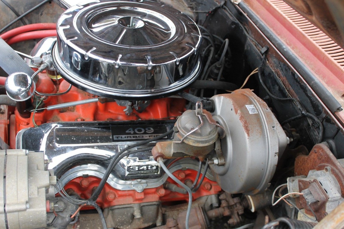 Under the hood is the numbers matching 409ci V8 which is backed by the original Powerglide transmission. This is where the good news starts, and where you receive the head start that I was referring to earlier. The engine and transmission have both been freshly rebuilt, and have clocked about 50 miles since the work was completed. In addition, the car sports a new exhaust, a new gas tank and lines, all new brakes, brake lines, and power booster, and the A-arms have also been rebuilt with new bushes and ball joints. The car is also equipped with power steering and runs and drives well after all of the mechanical refurbishment.