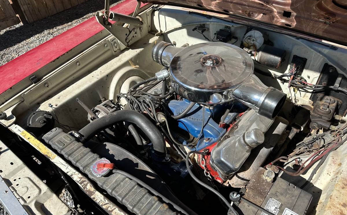 It’s definitely colorful, the engine looks like a combination of Ford blue and Chevrolet orange, and the white engine compartment doesn’t work with the red exterior, I agree, put it back to the way it was. It does look to be complete, and decent shape, the price isn’t out of the atmosphere