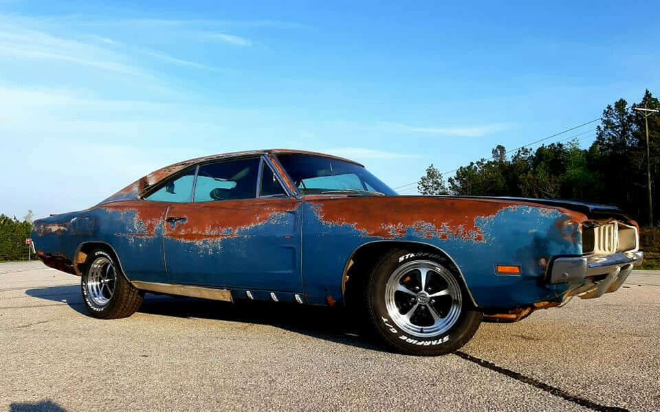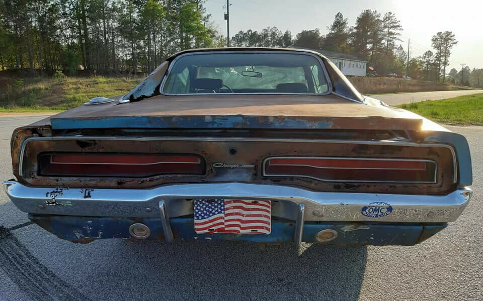 This 1969 Dodge Charger is said to be a real barn find that has been rescued from long-term storage and still retains its numbers-matching drive train! It was last registered in 1986 and can now be found for sale here on eBay with an asking price just shy of $20,000. It obviously has some dents and dings and the B5 Blue paint has given way to patina, but it doesn’t look like the rust has eaten through much of the body. Located in Millen, Georgia, the ad says the wheels and tires you see in the photos don’t go with the car, but I guess everything is negotiable. Have a look at this nice Mopar project and let us know what you think.