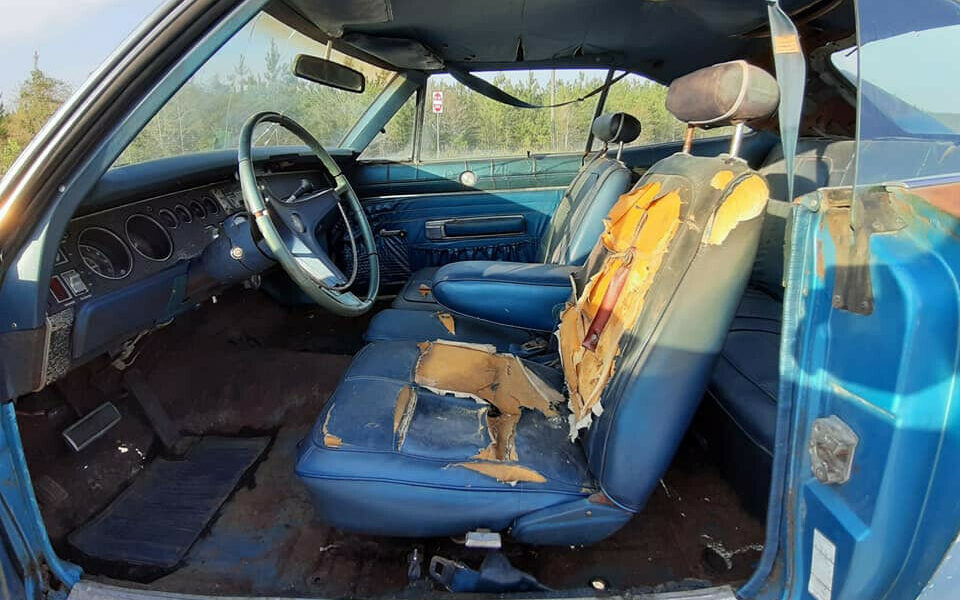 As mentioned before, the drive train is the original numbers-matching set-up, which is a huge bonus for a project like this. Hopefully, the 383 cubic inch big-block V8 is rebuildable. The ad says it turns easy but doesn’t currently run and drive. It is mated to the factory torqueflite 727 transmission and has less than 70K original miles since new.
