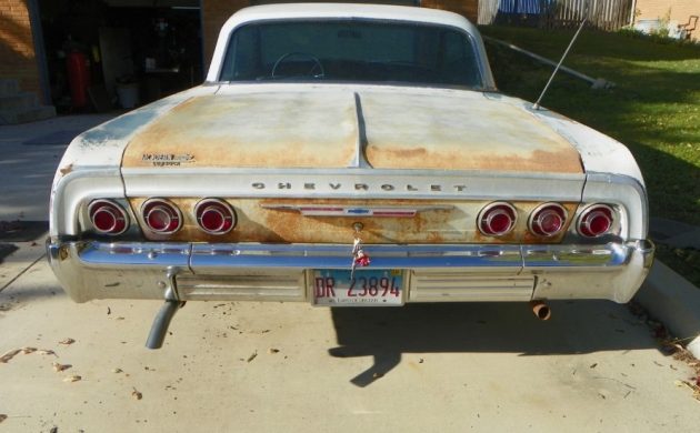Chevrolet’s full-size automobiles were in the last of a four-year design cycle in 1964. The crisp styling of the ‘63s was replaced by a boxier, slab-sided look, but models like the Impala continued to sell well over similar products offered by Ford. The seller’s ’64 Impala Sport Coupe is largely a very tired survivor that is more than ready for a restoration. Located in West Chicago, Illinois, this running project is available here on eBay for a flat $15,000. Are you ready to roll up your sleeves and go to work?