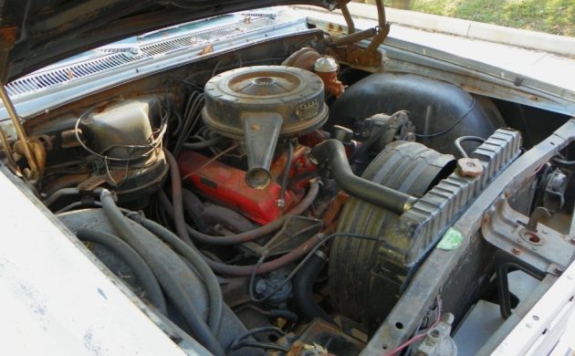 While rust isn’t an issue due to the car’s roots being out west, it was whacked once on the driver’s side, and it needs clearing up. The original color of the Chevy was silver/blue, but Earl Schieb or someone switched it to white a few years ago. Unless your goal is to make a “hip hop” car out of this Impala (the ‘64s were popular for this in Cali at one time – shades of Cheech & Chong), this should have a nice set of bones to bring back to original specs.