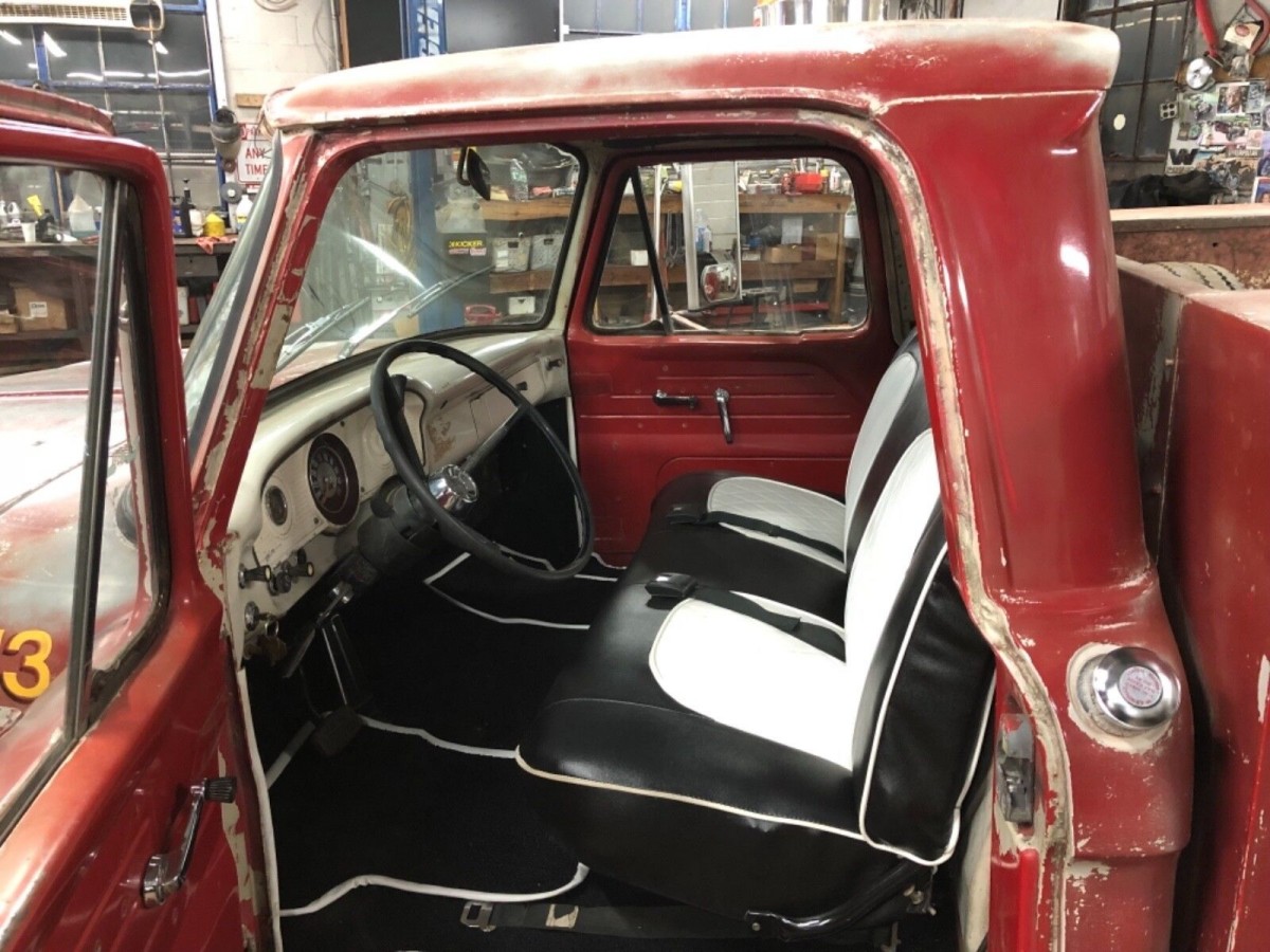 The details on the suspension are as follows: “Upgraded front suspension with a Camaro subframe, new calipers, new 2 inch drop spindles, power steering and power disc brakes. Coys Wheels 22×10 for the rear with new 305/35/22 tires, 20×8.5 for the front with new 275/40/20 tires.” Other tweaks include an updated interior, featuring new carpeting, seat covers with a matching headliner and custom floor mats. The seller notes the seat mechanicals were also refreshed, including “…seat frame was cleaned, sanded and painted. All mechanicals cleaned and greased. Seat tracks work great.”
