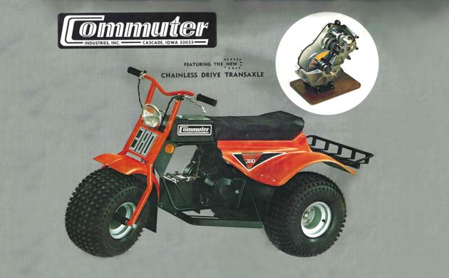 That being said, I do own one of these unusual Commuter Industries TE-380 three-wheelers. These are tough machines, made more for farmers and ranchers than for people who want to scream down a trail or a gravel road. They even had accessories like an herbicide sprayer attachment and front and rear racks. I haven’t seen a perfect example, and mine is far from perfect, but it runs great, and starts and stops as it should. It’s a little clunky, but maybe that’s just the toughness coming out. Here’s a fun little two-page brochure with some info and specs. And, another one with even more info. And, an overwhelming amount of info, yet still no dates of manufacturer.