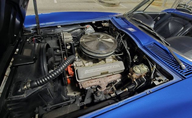 This transmission change may upset the purists. However, that extra gear is at a 0.64:1 gear ratio, whereas a stock four-speed offers only a 1.00:1 ratio. What does that mean? Whoever made the change was probably tired of hearing the engine work so hard at highway speeds. With a 3.08 rear end, the combination makes for a very long-legged Corvette on the highway. It is unfortunate that the original transmission is not mentioned in the ad and presumably will not be included in the sale.