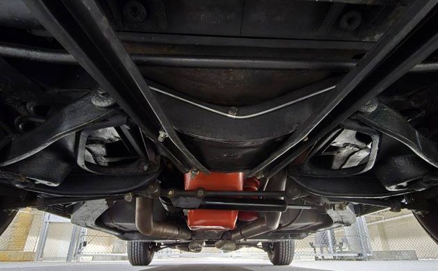 The master cylinder is a dual reservoir 67-82 part, a good safety upgrade from the original single reservoir unit if the car is driven regularly. The 5 speed is a nice upgrade for a car intended to be driven, but a 3.55 or even a 3.70 rear would make the car a lot more fun to drive while still offering comfortable cruising rpm’s. And if it really is a high revving 340 then it has to be a real dog off the line with a 3.08. I don’t know what it has for springs, but it’s sitting much higher than it should.