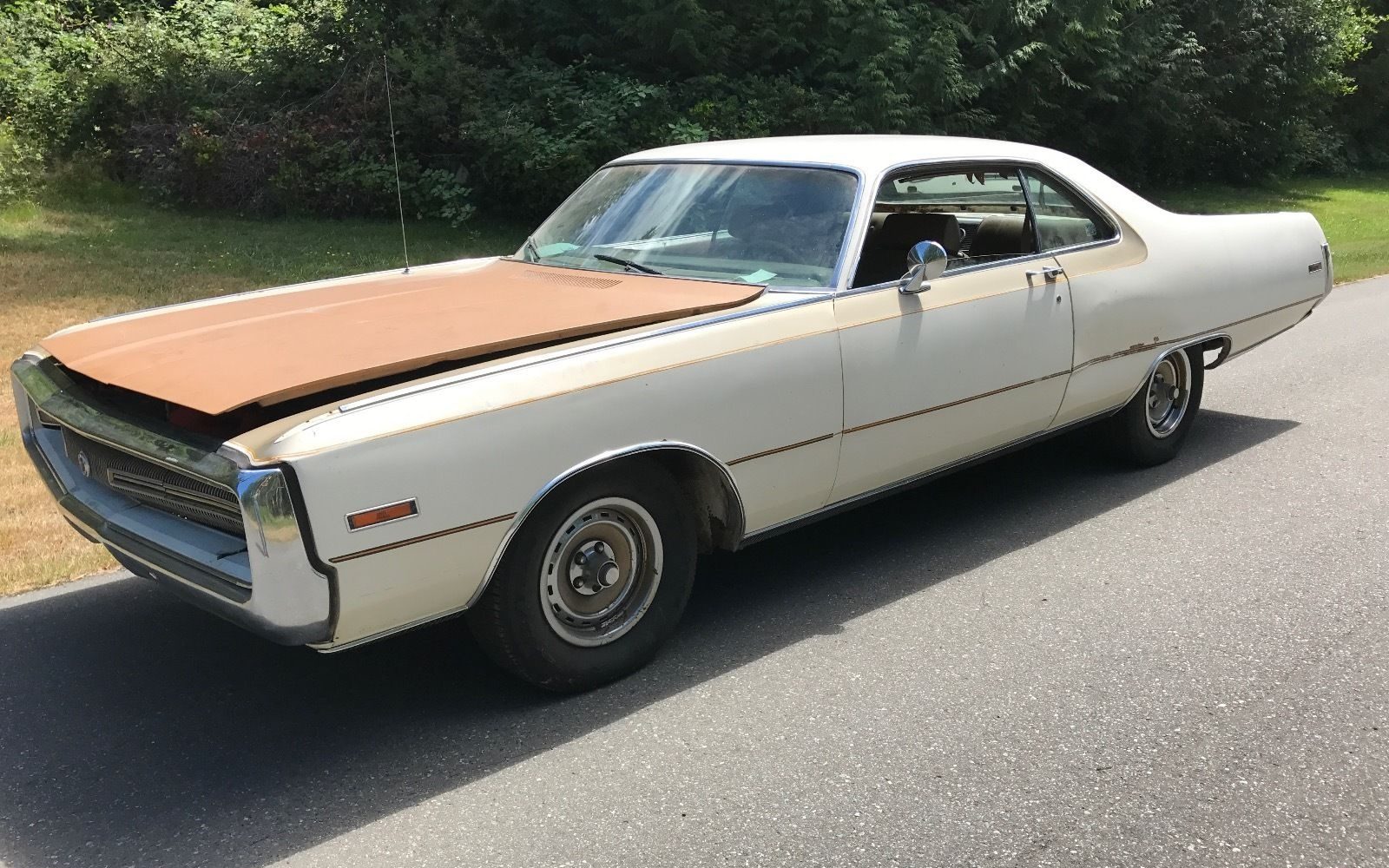 Under the hood is a high-performance 440 “TNT,” and this is indeed different than a regular 440 in grandma’s motor home! Most notably, an HP (high-performance) 440 would’ve come with a 4-barrel carburetor and a dual “snorkel” type breather as shown in this photo, as well as an upgraded camshaft. The engine in this particular 300 looks to be totally complete and probably in running order. As the seller states, “It runs, drives and stops enough to get on a trailer,” and that is good enough for me! I have seen these cars run before, and for as large as they are they get up and move!