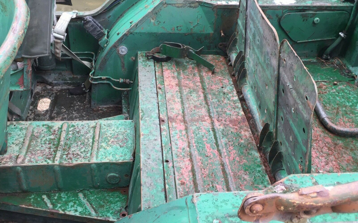 Interior: Floors and metal work looks good. Media blast and rhinoline that thing. No, I’m not going for originality. I like utility vehicles to be just that. Make the interior usable. Seats are just cushions and any upholstery / marine shop can fabricate simple rectangles for this inexpensively. The top might be a bit trickier, but the same marine upholstery shop that does boat tops can handle it.