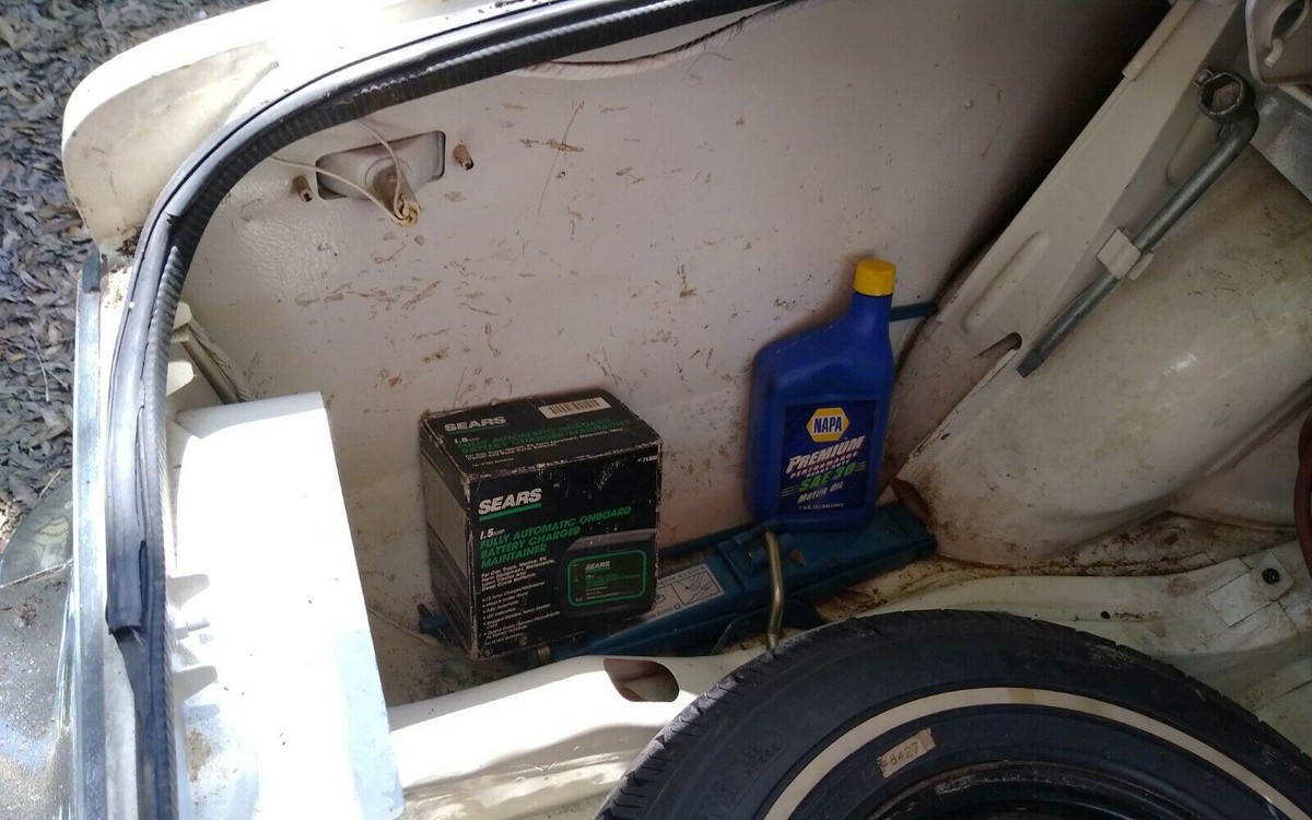 I’m not sure what the seller was trying to convey with the photo shown above but it’s one of the only other semi-exterior photos. It appears as if both the wiring and left rear side marker light housing have been painted, is that factory paint? Who knows. The seller doesn’t give really any description at all but they say “Pulled out will need to be gone thru. All there, minimal rust. Great little cute time piece.”