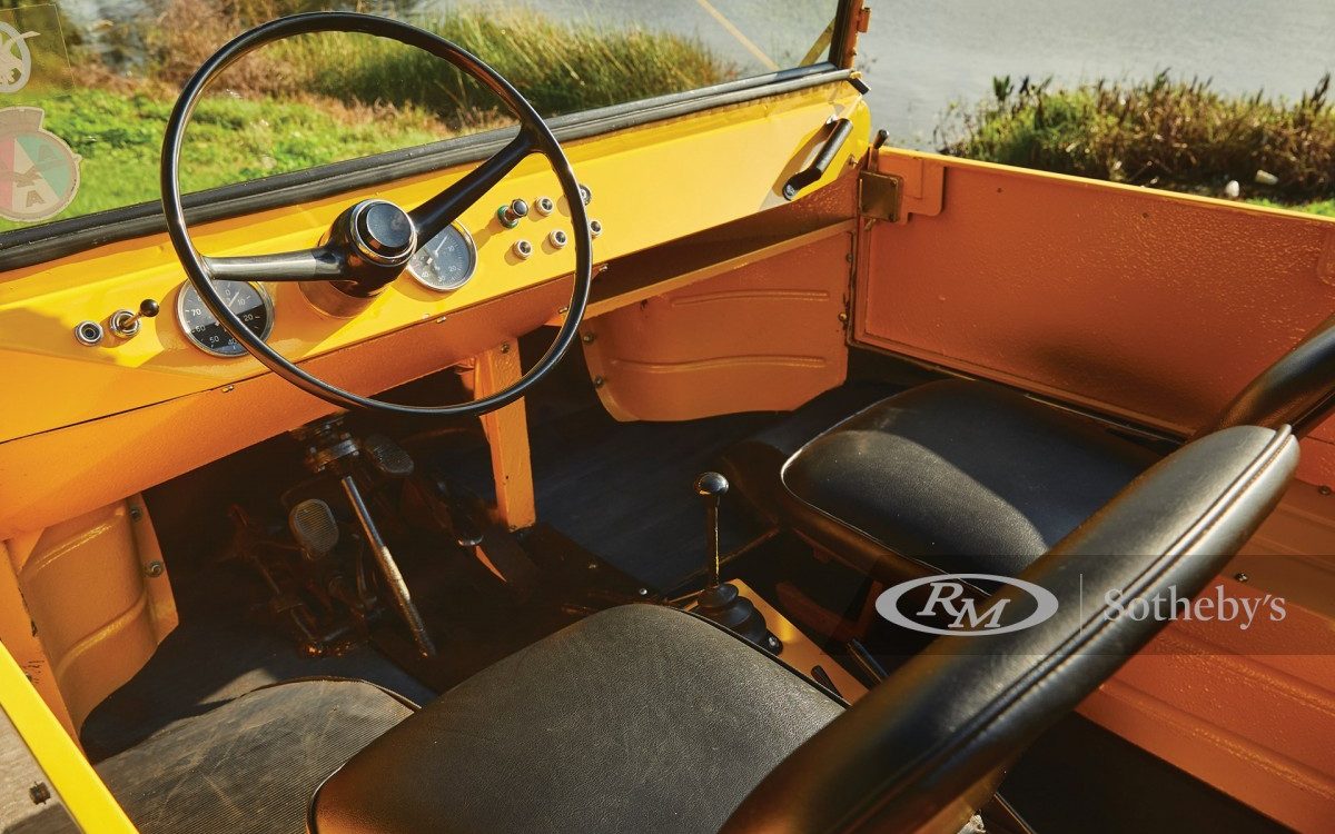 When I first spied the interior, my first thought was a VW Thing – it is a similarly spartan environment but that’s what you would expect on such a basic utility vehicle. While it’s not stated, it’s easy to imagine that it is one of those kinds of interior settings that can be cleaned with a garden hose. The seats, I imagine, have been reupholstered, they look too good for having experienced 53 years of age along with some amount of sun exposure.