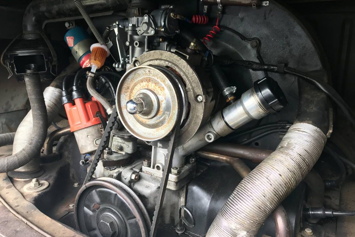 That’s almost certainly a later engine, fan shroud’s wrong for a 36, & I’ve never seen that filler setup either. Could very well be a Cali model, probably a 1300 or 1500. Odd that they converted it to an alternator, but left it a single-port, tho. If I were going with a later engine, I’d go a lot further that that, but keep the original handy.