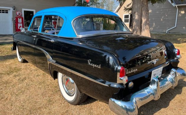 GM’s Canadian-specific models, such as the Beauvillemont, Parisienne, Acadian, etc., get a lot of old car press, but the General wasn’t the only one with a Canada-specific portfolio. ChryCo’s Dodge division got in on the action with the Regent, such as this beautiful 1954 edition, that hails from Aldergrove, British Columbia. This is quite a find, courtesy of Scott, and it’s the first we reviewed on BF. Let’s take a close look at this north-of-the-border Mopar and see what we have. Those with an interest will find the listing here on craigslist, where it’s available for $12,900 (don’t know if that’s Canadian or U.S.; $12,900 U.S. = $17,802 CDN; $12,900 CDN = $9,348 U.S. at May 1, 2025 exchange rates).