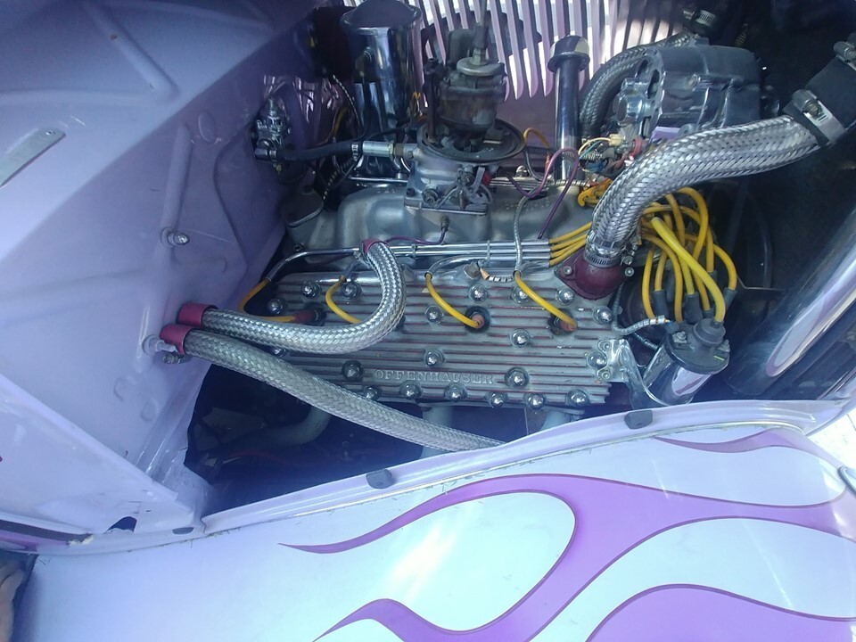 No, you’re not alone Bill, I definitely heard it… And I completely agree with Robt, I’d like to see this car sans purple anything (even though it’s my favorite color, there’s a time and place for everything, and this ain’t it), minus the ‘vulgalour’, and any GM parts that have been stuck willy-nilly on this beautiful old ride. Black, black, black, polish the chrome, push the ZZ Top disc in and let the white smoke roll!