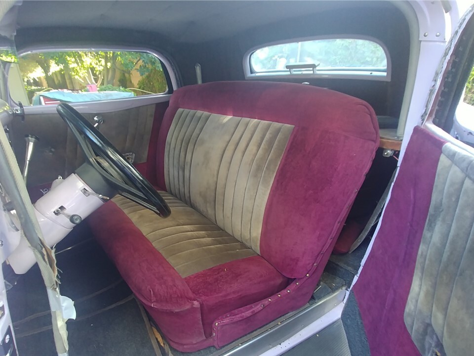 Remove the 80’s ugly and you can have a sweet ‘34 3 window. Paint, velour and wheels have to go. Same with the under hood ugly. May have been acceptable in its day but not in my book. And since tranny needs work it’s a perfect time to upgrade to a 5spd stick. Dash will be ok once it’s painted but gm steering columns and whelk need to go.