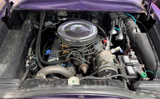 The same shade of Purple found on the exterior graces this Ford’s interior steel surfaces. It is contrasted by the Pale Beige cloth trim and the Black carpet. Other custom touches include a tilt wheel, a floor shifter, a Sun Super Tach, additional gauges mounted in the bright trim fascia, air conditioning, a timber sports wheel, and a modern CD stereo. The overall presentation is extremely tidy, with no major flaws or problems. However, I am surprised by the wires hanging below the dash near the A/C unit. These look untidy, although addressing that shortcoming will only take a few minutes for the buyer to complete, and should make an enormous difference to the appearance, while only costing a few cents. Otherwise, there are no obvious pressing needs.