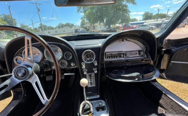 Recent maintenance includes a new Edelbrock carburetor, radiator, water pump, fuel pump, master cylinder, and fuel tank with sending unit. The seller notes that nearly all of the Corvette’s systems are functional, gauges, wipers, heater, lights, signals, and even the clock are in working order. The only exception is the tachometer.