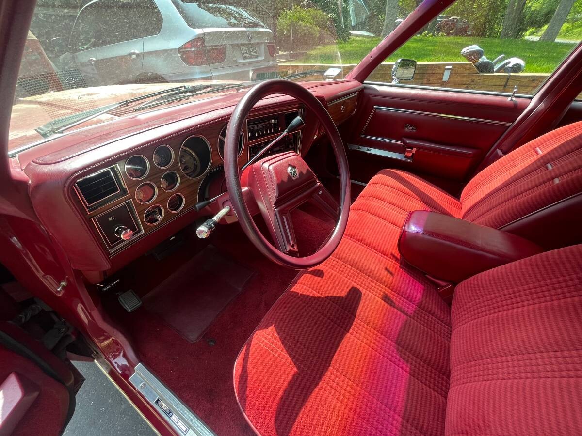 The body is said to be rust-free and the burgundy/red paint is good except on upward-facing surfaces where it’s faded and peeling. The matching vinyl top and velour interior are in great condition, the latter being good in part from being a non-smoker vehicle. The factory A/C is said to need a shot of freon, and the left-side windows have a habit of coming off their tracks when rolled all the way down. The only real downside may be in working with your local DMV on a new title as the one for this automobile is said to be missing. They don’t build them like this anymore (good or bad?).
