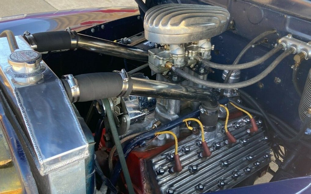 The story behind this car is that it was owned by a gentleman, for at least the last 35 years, and since his recent death, it is now being offered for sale. The seller indicates that the engine was swapped right before the owner’s passing, so he got it completed, and running, though it’s not known with certainty what was specifically done to the engine. What is known is that it is a flathead V8 that, “purrs like a kitten but comes on like a tiger with the dual Stromberg 97 carbs on top of the high-rise Thickstun intake manifold flanked by Fenton aluminum heads. The idle is very comfortable but has a mild lope that lets one know it’s ready to go“. More than likely, it’s a 239 CI V8 with an original HP rating of 100. It’s a safe bet that it has been enhanced a bit beyond that with all of its obvious mods. The transmission is a typical three-speed manual and there is a Columbia two-speed differential in place. Its engaging mechanism needs to still be installed, however.