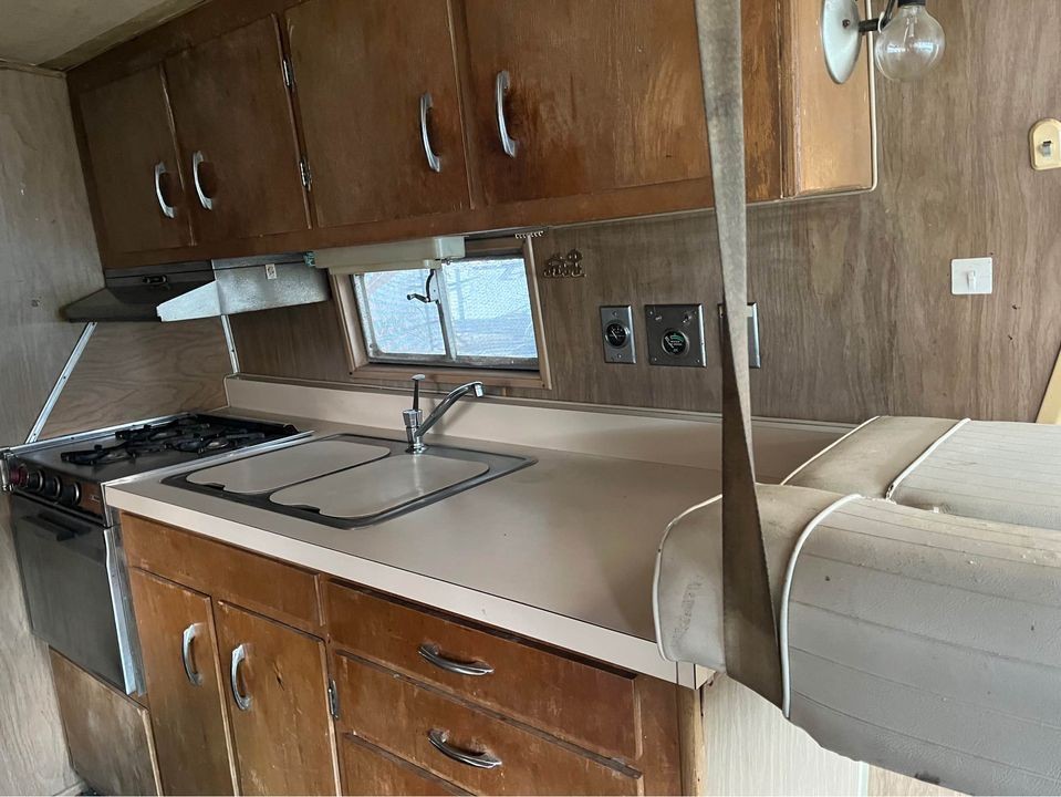 I remember, as a kid, these were the 1st motorhomes we saw in campgrounds. It was such a radical concept as opposed to our “pulled” campers. It seemed so convenient, just pull in, no disconnecting and rehooking, seemed like a better way to go. Eventually, the old man DID do the motorhome thing with the square Winnebago types. This is an okay find, in that, this old gal should make one more trip, to it’s final resting spot on some lot in the UP,, overlooking some pristine lake, no internet/TV/phone,,that’s right, no worries and as the world continues to deteriorate, sounds better and better to me everyday. I’d be in for a grand,,,